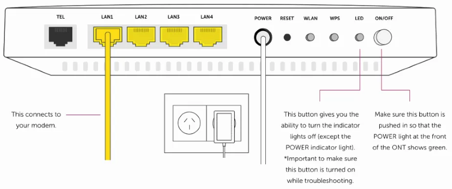 - ○ Raise faults with fibre providers if your ONT is not functioning
