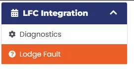 - In the left sidebar menu, under the “LFC Integration” heading, click “Lodge Fault” and work through the form!