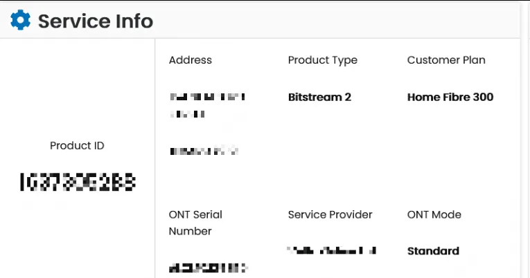 On this page, you’ll be able to see all information about your ONT under the “Service Info” heading. Let’s work through each of the headings/sections and see what they mean (note some of this information will vary slightly depending on the LFC you’re connected through.